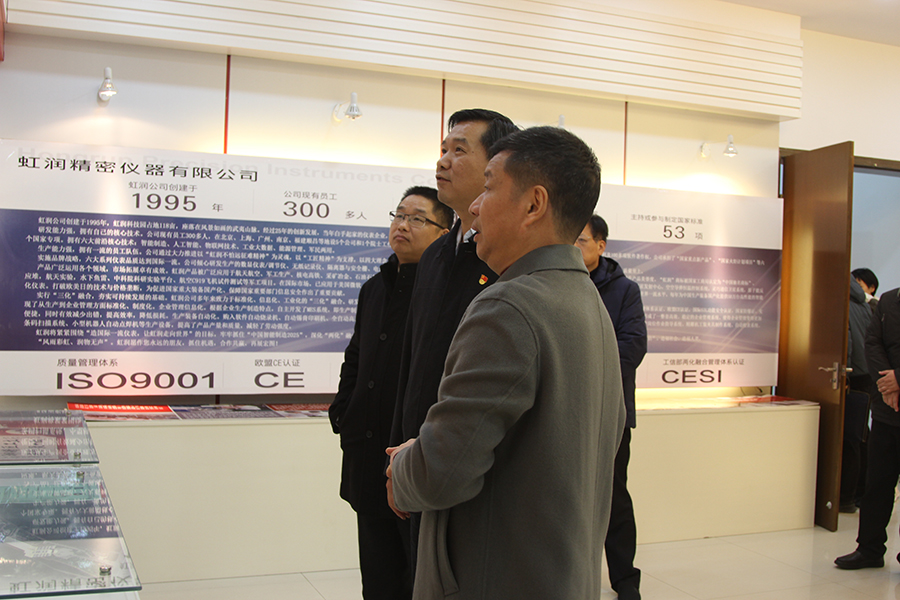 2020年12月15日,南平市袁超洪市長一行在順昌縣委書記邱建斌等人陪同下蒞臨虹潤公司考察調(diào)研。虹潤公司董事長林善平熱情接待。袁市長一行在林善平董事長陪同下參觀了虹潤公司文化展廳和產(chǎn)品科技展廳,林善平董事長向袁市長詳細(xì)匯報了公司的創(chuàng)業(yè)歷程和有關(guān)轉(zhuǎn)型升級、技術(shù)研發(fā)、智能制造、市場銷售等具體情況。袁市長認(rèn)真聽取了匯報,當(dāng)他聽到虹潤公司在疫情過后整體營商環(huán)境低迷的情況下,著力在電商營銷領(lǐng)域發(fā)力,整體銷售不降反增,同比增長20%,同時在已有六大系列儀表基礎(chǔ)上又新推水質(zhì)分析儀、電能質(zhì)量分析儀、溫濕度記錄儀、可編程繼電器等四大系列產(chǎn)品時,高興的說虹潤公司還要進(jìn)一步創(chuàng)新,開拓更多的儀器儀表科技領(lǐng)域,進(jìn)一步擴大市場。