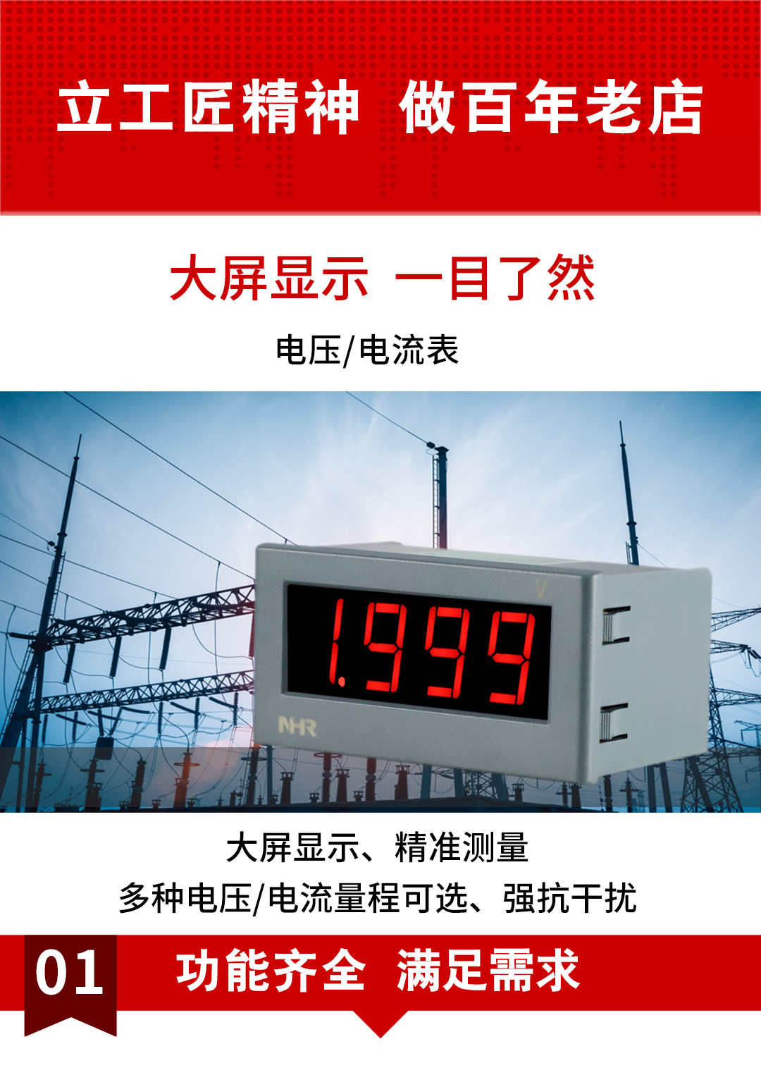 虹潤(rùn)公司是專(zhuān)業(yè)生產(chǎn)數(shù)字電壓表的國(guó)家專(zhuān)精特新“小巨人”企業(yè)。生產(chǎn)的電壓/電流表,具有大屏LED顯示,交直流電壓/電流輸入,免設(shè)置易接線,性價(jià)比高等特點(diǎn)。產(chǎn)品獲得一種交流信號(hào)變送器、交直流信號(hào)轉(zhuǎn)換電路、基于DCS技術(shù)的盤(pán)裝式三相電量表等3項(xiàng)國(guó)家發(fā)明專(zhuān)利,主持起草現(xiàn)場(chǎng)設(shè)備集成等5項(xiàng)智能制造國(guó)家標(biāo)準(zhǔn),物聯(lián)網(wǎng)電流變送器規(guī)范、物聯(lián)網(wǎng)總體技術(shù)智能傳感器特性與分類(lèi)等2項(xiàng)國(guó)家標(biāo)準(zhǔn),以及直流漏電流傳感器規(guī)范、通信系統(tǒng)多通道數(shù)據(jù)采集控制終端規(guī)范等2項(xiàng)軍用標(biāo)準(zhǔn),參與國(guó)際5G標(biāo)準(zhǔn)制定。產(chǎn)品廣泛應(yīng)用于電力系統(tǒng)、工業(yè)制造、自動(dòng)化設(shè)備、計(jì)量檢測(cè)等各種工業(yè)領(lǐng)域。
