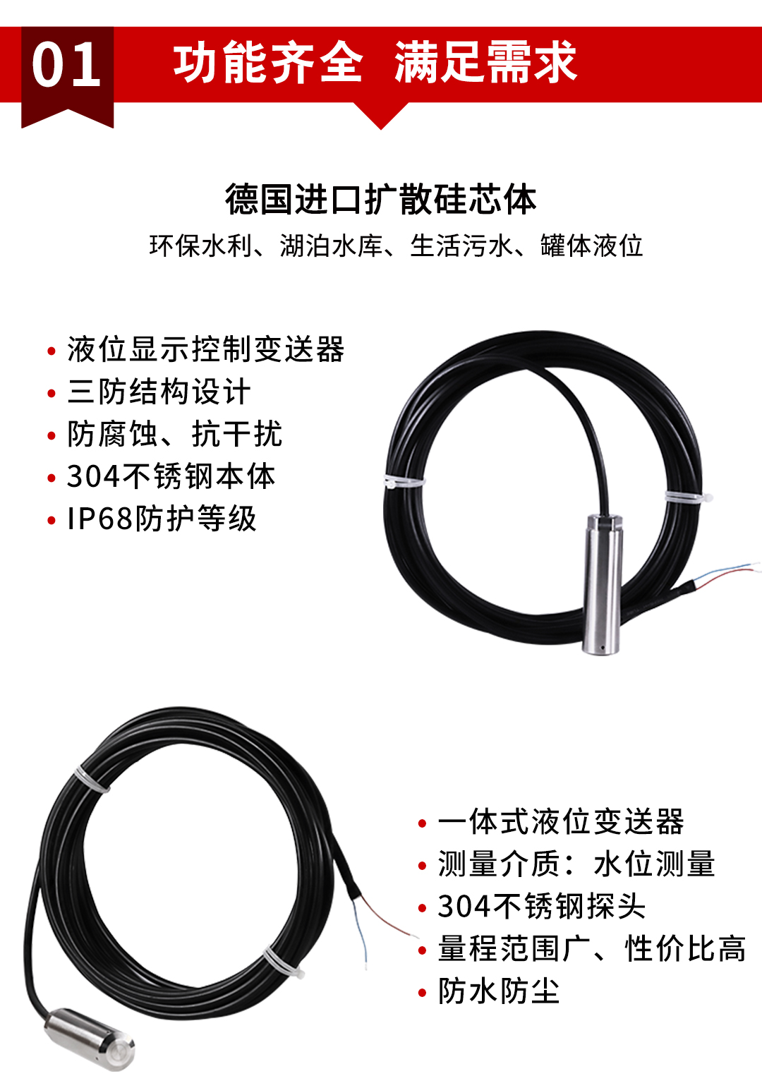 虹潤公司是專業(yè)生產(chǎn)液位變送器的國家專精特新“小巨人”企業(yè),生產(chǎn)的投入式液位變送器,具有采用進口芯體,精準測量,過壓保護,高抗干擾,IP68防護等級等特點。產(chǎn)品獲得一種數(shù)字顯示低功耗壓力表、一種信號發(fā)生器裝置等2項國家發(fā)明專利,主持起草工業(yè)過程控制系統(tǒng)用模擬輸入兩位或多位輸出儀表、工業(yè)過程測量和控制系統(tǒng)用壓力/差壓變送器等2項國家標準,通信系統(tǒng)多通道數(shù)據(jù)采集控制終端規(guī)范軍用標準,以及現(xiàn)場設備集成等5項智能制造國家標準。參與國際5G標準制定,取得數(shù)顯壓力表等2項相關軟件著作權。產(chǎn)品廣泛應用于電力、冶金、農業(yè)、食品、制藥、水處理等對液位監(jiān)測需求的行業(yè)領域。