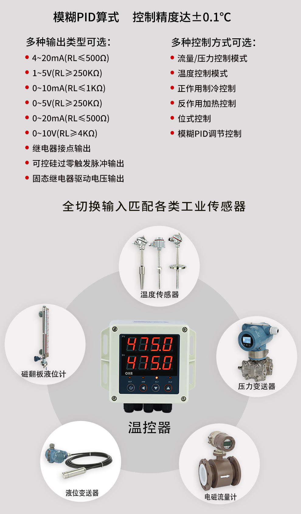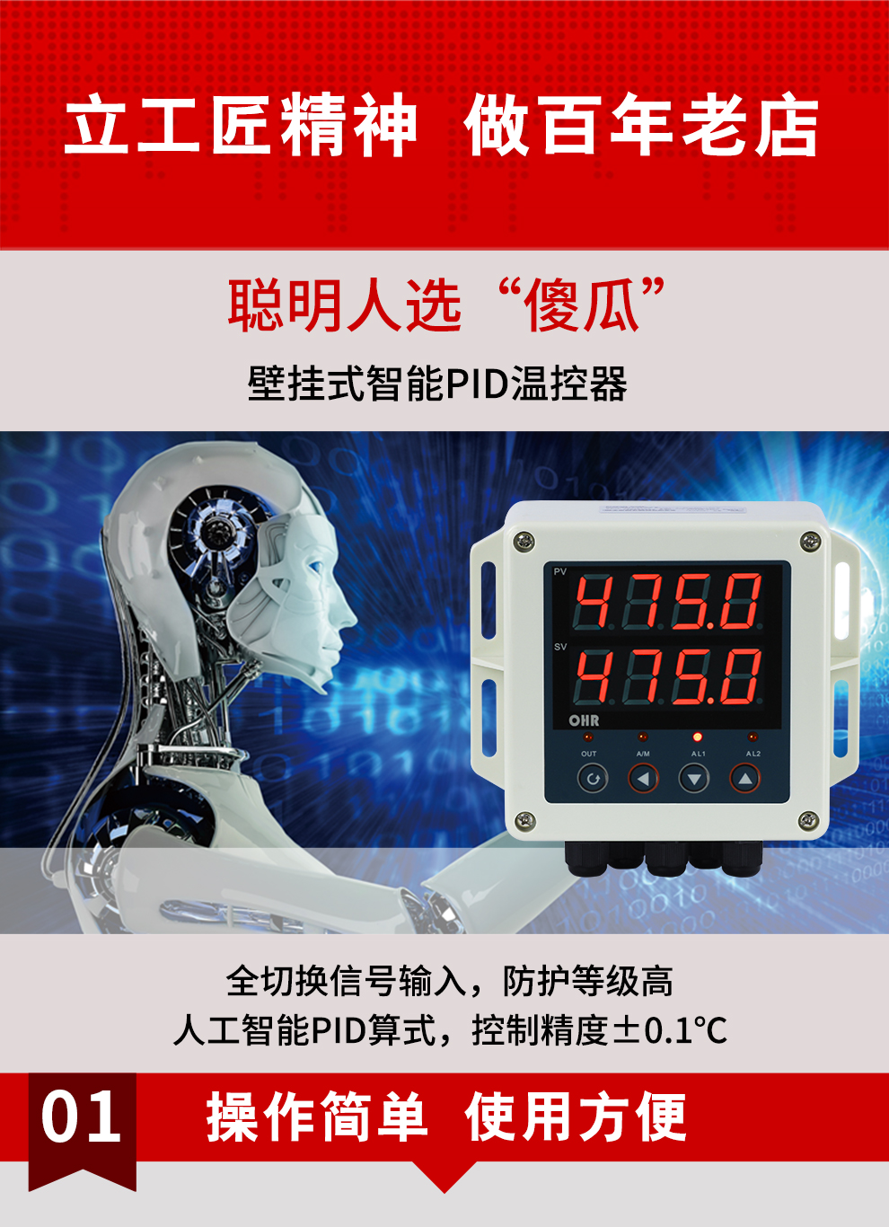 虹潤公司是專業(yè)生產(chǎn)溫控器的國家專精特新“小巨人”企業(yè)。生產(chǎn)的壁掛式PID溫控器,具有全切換信號輸入,真正人工智能算式,控制精度達(dá)士0.1°C,防護(hù)等級高,RS485通訊輸出DN等特點(diǎn)。產(chǎn)品獲得模糊PID控制儀及控制方法、人工智能調(diào)節(jié)器、智能化控制器、移相觸發(fā)控制器、閥門自動手動無擾動操作控制方法及裝置等5項(xiàng)國家發(fā)明專利,主持起草主持起草工業(yè)過程控制系統(tǒng)用模擬輸入兩位或多位輸出儀表、物聯(lián)網(wǎng)智能溫度儀表通用技術(shù)條件、工業(yè)過程測量和控制系統(tǒng)用智能調(diào)節(jié)器等3項(xiàng)國家標(biāo)準(zhǔn),以及通信系統(tǒng)多通道數(shù)據(jù)采集控制終端規(guī)范軍用標(biāo)準(zhǔn)。參與國際5G標(biāo)準(zhǔn)制定,取得傻瓜式PID調(diào)節(jié)儀等3項(xiàng)相關(guān)軟件著作權(quán)。產(chǎn)品廣泛應(yīng)用于電力、石化,冶金、制藥、食品等幾乎所有工業(yè)現(xiàn)場,實(shí)現(xiàn)精準(zhǔn)控溫,保障生產(chǎn)安全與質(zhì)量。