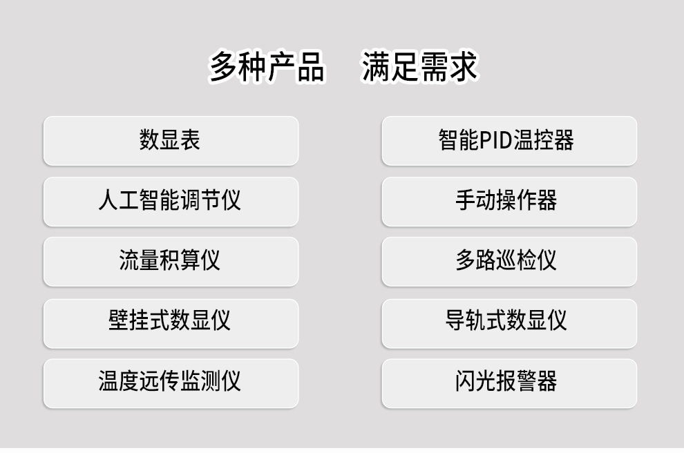 數(shù)顯儀表與溫控器 顯示控制儀 模糊PID溫控器 人工智能調(diào)節(jié)儀 手動操作器 流量積算儀 數(shù)字顯示容積儀 多路巡檢儀 導(dǎo)軌式數(shù)顯表 導(dǎo)軌式溫控器 導(dǎo)軌式數(shù)顯溫度變送器 導(dǎo)軌式流量積算儀 導(dǎo)軌多路巡檢儀 壁掛式數(shù)顯表 壁掛式溫控器 閃光報(bào)警器 移相觸發(fā)器 導(dǎo)軌流量積算儀 固態(tài)繼電器