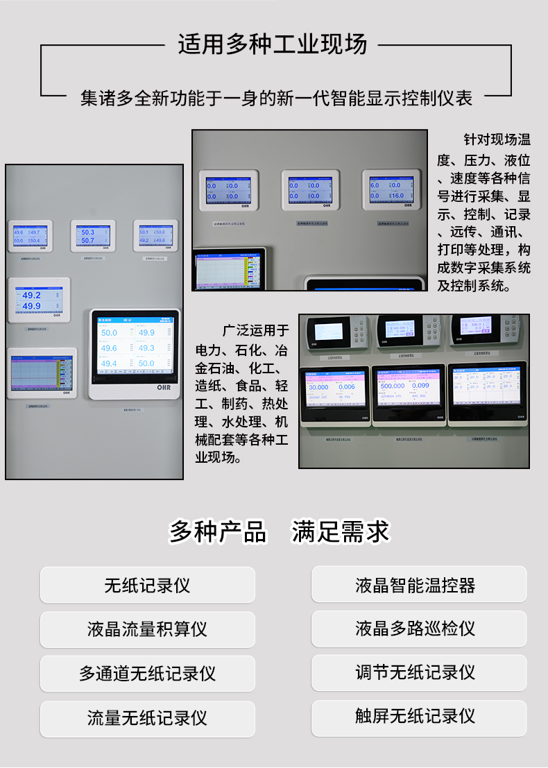虹潤公司是專業(yè)生產(chǎn)無紙記錄儀的國家專精特新“小巨人”企業(yè)。生產(chǎn)的觸摸屏調(diào)節(jié)無紙記錄儀,具有觸摸大屏顯示,真正人工智能算式,無需人工整定參數(shù),控制精度達士0.1°C,數(shù)據(jù)記錄與轉(zhuǎn)存, RS485/以太網(wǎng)通訊,5/7/9英寸可選等特點。產(chǎn)品獲得智能化控制器、人工智能調(diào)節(jié)器及調(diào)節(jié)方法、模糊PID控制儀及控制方法、平板無紙記錄儀、巡回檢測顯示方法及裝置等5項國家發(fā)明專利,主持起草物聯(lián)網(wǎng)智能記錄儀表通用技術(shù)條件、物聯(lián)網(wǎng)智能溫度儀表通用技術(shù)條件、工業(yè)過程測量和控制系統(tǒng)用智能調(diào)節(jié)器等3項國家標準,通信系統(tǒng)多通道數(shù)據(jù)采集控制終端規(guī)范軍用標準,以及空間數(shù)據(jù)與信息數(shù)據(jù)傳輸系統(tǒng)等2項航天標準,參與國際5G標準制定,取得觸摸屏彩色調(diào)節(jié)無紙記錄儀等3項相關(guān)軟件著作權(quán)。產(chǎn)品廣泛應用于電力、石化、冶金、化工、食品、制藥、熱處理、水處理、機械配套等諸多領域。