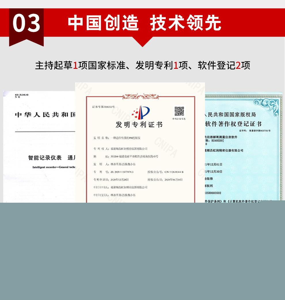 虹潤公司是專業(yè)生產(chǎn)水質(zhì)分析儀的國家專精特新“小巨人”企業(yè)。生產(chǎn)的熒光法溶解氧控制器,具有采用熒光法測(cè)量,中英文菜單切換 ,溫度、壓力、鹽度三重補(bǔ)償,標(biāo)配報(bào)警、變送、RS485通訊等特點(diǎn)。產(chǎn)品獲得產(chǎn)品獲得一種高精度在線溶解氧測(cè)量儀表、智能化控制器等2項(xiàng)國家發(fā)明專利;主持起草現(xiàn)場設(shè)備集成等5項(xiàng)智能制造國家標(biāo)準(zhǔn),以及現(xiàn)場設(shè)備工具(FDT)接口規(guī)范、工業(yè)過程控制系統(tǒng)用模擬輸入兩位或多位輸出儀表、過程分析技術(shù)系統(tǒng)、液體熒光氧分析儀的性能表示等4項(xiàng)國家標(biāo)準(zhǔn);參與國際5G標(biāo)準(zhǔn)制定,取得溶解氧測(cè)量儀表等2項(xiàng)相關(guān)軟件著作權(quán)。產(chǎn)品廣泛應(yīng)用于實(shí)驗(yàn)室、水處理、環(huán)境監(jiān)測(cè)、食品、制藥、農(nóng)業(yè)等諸多領(lǐng)域。