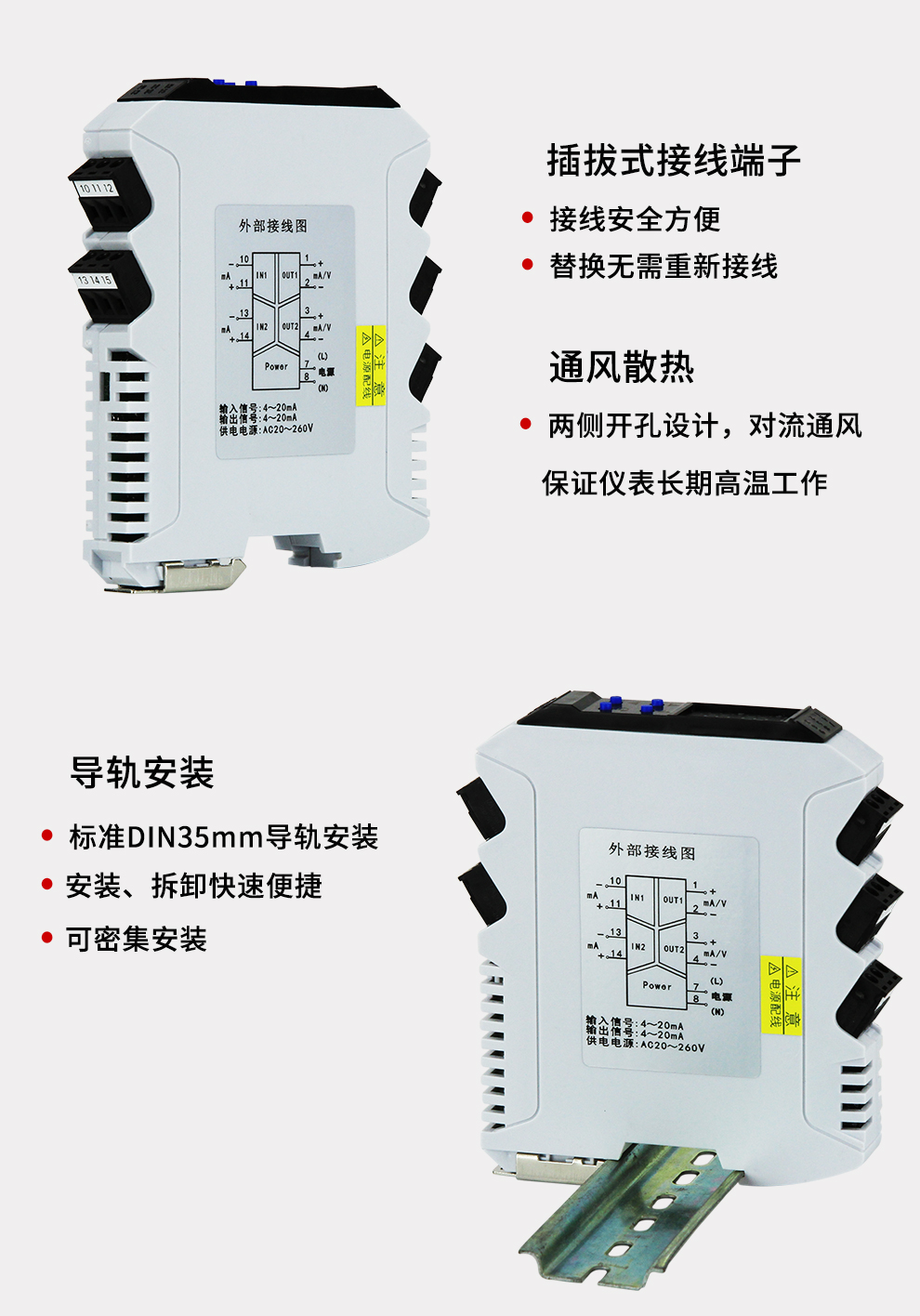 虹潤(rùn)公司是專業(yè)生產(chǎn)隔離器的國家專精特新“小巨人”企業(yè)。生產(chǎn)的導(dǎo)軌式智能隔離器 ,具有高清顯示單元,參數(shù)可設(shè)置,寬電源供電,響應(yīng)快,帶RS485通訊等特點(diǎn)。產(chǎn)品獲得信號(hào)隔離器、一種二端子模塊、無源信號(hào)隔離器等3項(xiàng)國家發(fā)明專利,主持起草現(xiàn)場(chǎng)設(shè)備工具(FDT)接口規(guī)范、工業(yè)過程測(cè)量和控制系統(tǒng)用隔離式安全柵、工業(yè)過程測(cè)量和控制系統(tǒng)用配電器等3項(xiàng)國家標(biāo)準(zhǔn),以及通信系統(tǒng)多通道數(shù)據(jù)采集控制終端規(guī)范軍用標(biāo)準(zhǔn),參與國際5G標(biāo)準(zhǔn)制定,取得智能隔離器等2項(xiàng)相關(guān)軟件著作權(quán)。產(chǎn)品廣泛應(yīng)用于電力、石化,冶金、制藥、水處理、機(jī)械配套等各種工業(yè)現(xiàn)場(chǎng)。