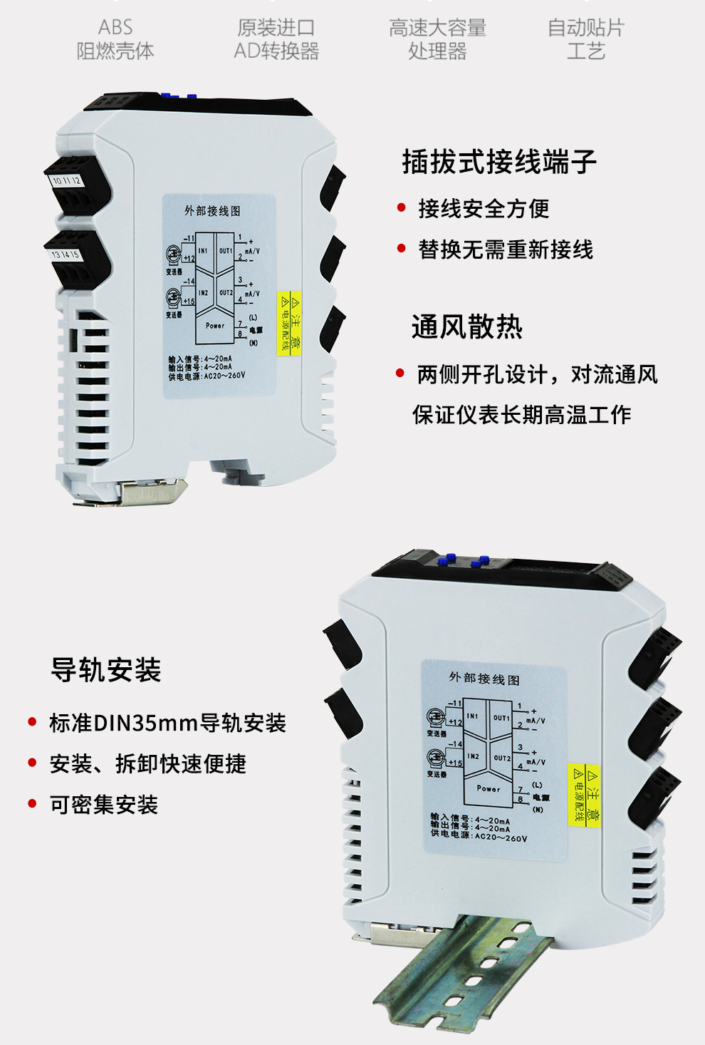 OHR-X33系列導軌式智能配電器給二、三線制變送器提供隔離的電源電壓,將變送器產(chǎn)生的直流電壓電流信號,經(jīng)本隔離器轉(zhuǎn)換成所需的輸出信號至控制系統(tǒng)。寬電源設(shè)計:20-260V交直流供電。配置高清顯示單元,通過輕觸按鍵設(shè)置每個通道的參數(shù)及每個通道之間的切換。