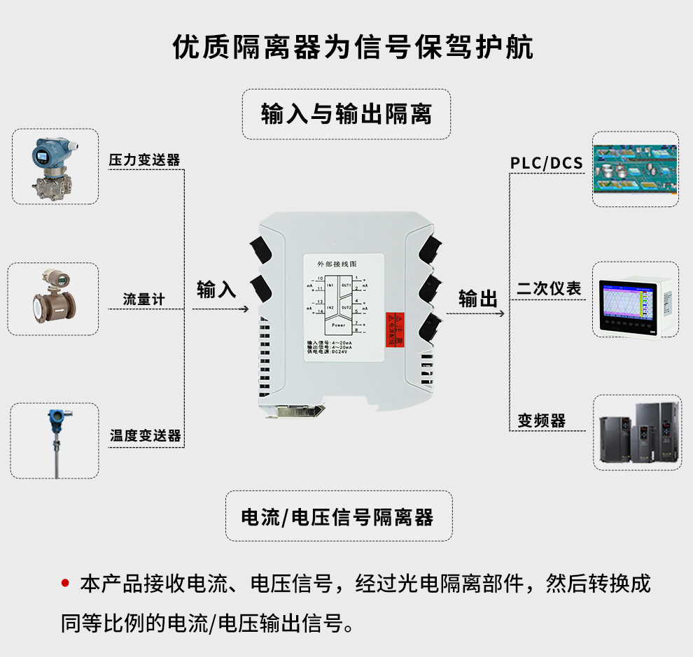 虹潤(rùn)公司是專業(yè)生產(chǎn)隔離器的國(guó)家專精特新“小巨人”企業(yè)。生產(chǎn)的智能信號(hào)隔離器涵蓋電流電壓變送器、溫度變送器、配電器、頻率轉(zhuǎn)換器、開(kāi)關(guān)量轉(zhuǎn)換器及通訊轉(zhuǎn)換器等多種產(chǎn)品類型。產(chǎn)品獲得信號(hào)隔離器、一種二端子模塊、無(wú)源信號(hào)隔離器等3項(xiàng)國(guó)家發(fā)明專利,主持起草現(xiàn)場(chǎng)設(shè)備工具(FDT)接口規(guī)范、工業(yè)過(guò)程測(cè)量和控制系統(tǒng)用隔離式安全柵、工業(yè)過(guò)程測(cè)量和控制系統(tǒng)用配電器等3項(xiàng)國(guó)家標(biāo)準(zhǔn),以及通信系統(tǒng)多通道數(shù)據(jù)采集控制終端規(guī)范軍用標(biāo)準(zhǔn),參與國(guó)際5G標(biāo)準(zhǔn)制定,取得導(dǎo)軌式智能隔離器、頻率轉(zhuǎn)換器等3項(xiàng)相關(guān)軟件著作權(quán)。產(chǎn)品廣泛電力、冶金、工業(yè)電爐、變電站、高壓電機(jī)房等需要電隔離的工業(yè)自動(dòng)化控制系統(tǒng)。