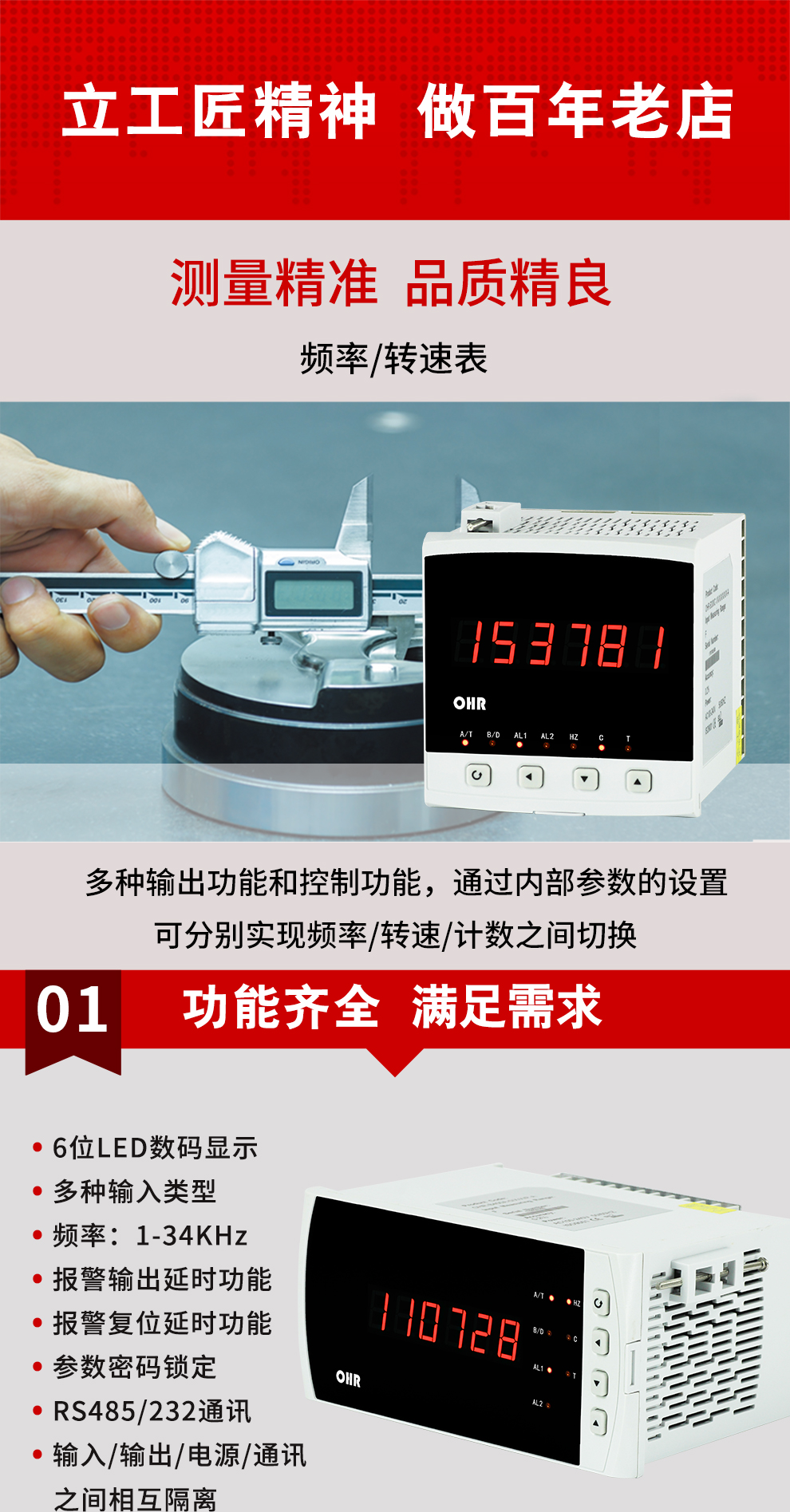 虹潤公司是專業(yè)生產(chǎn)頻率表的國家專精特新“小巨人”企業(yè)。生產(chǎn)的頻率/轉速表,具有可實現(xiàn)頻率、轉速與計數(shù)功能的切換,報警繼電器輸出,變送輸出,RS485通訊等特點。產(chǎn)品獲得基于儀表殼體、一種儀表電源等2項國家發(fā)明專利,主持起草流程工業(yè)中電氣/儀表和控制系統(tǒng)的試車國家標準,通信系統(tǒng)多通道數(shù)據(jù)采集控制終端規(guī)范軍用標準,以及現(xiàn)場設備集成等5項智能制造國家標準。參與國際5G標準制定,取得頻率轉速儀表等2項相關軟件著作權。產(chǎn)品廣泛應用于電力系統(tǒng)、機械制造、汽車工業(yè)、航空航天、船舶海事、冶金礦山等行業(yè)的頻率與轉速參數(shù)監(jiān)測。