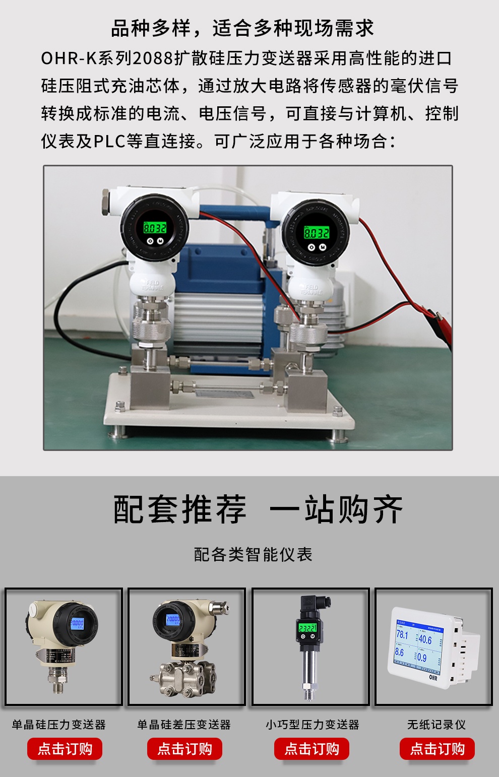 虹潤(rùn)公司是專業(yè)生產(chǎn)壓力變送器的國(guó)家專精特新“小巨人”企業(yè),生產(chǎn)的擴(kuò)散硅壓力變送器,具有精度高,穩(wěn)定性好,響應(yīng)速度快,高可靠性,抗過(guò)載和抗沖擊能力強(qiáng),安裝方便等特點(diǎn)。產(chǎn)品獲得一種數(shù)字顯示低功耗壓力表、一種信號(hào)發(fā)生器裝置等2項(xiàng)國(guó)家發(fā)明專利,主持起草工業(yè)過(guò)程控制系統(tǒng)用模擬輸入兩位或多位輸出儀表、工業(yè)過(guò)程測(cè)量和控制系統(tǒng)用壓力/差壓變送器等2項(xiàng)國(guó)家標(biāo)準(zhǔn),通信系統(tǒng)多通道數(shù)據(jù)采集控制終端規(guī)范軍用標(biāo)準(zhǔn),以及現(xiàn)場(chǎng)設(shè)備集成等5項(xiàng)智能制造國(guó)家標(biāo)準(zhǔn)。參與國(guó)際5G標(biāo)準(zhǔn)制定,取得數(shù)顯壓力表等2項(xiàng)相關(guān)軟件著作權(quán)。產(chǎn)品廣泛應(yīng)用于化工、食品、制藥、電力、設(shè)備配套、供暖、水處理、樓宇等行業(yè),需精準(zhǔn)測(cè)量流體壓力的現(xiàn)場(chǎng)。