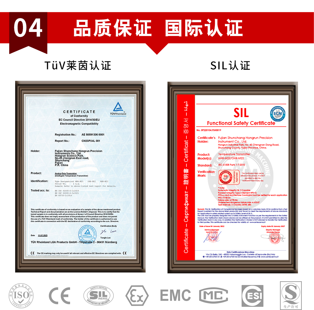 虹潤公司是專業(yè)生產(chǎn)溫度變送器的國家專精特新“小巨人”企業(yè)。生產(chǎn)的溫度變送器,具有采用磁隔離技術(shù),配套編程器可修改參數(shù),抗干擾能力強(qiáng),穩(wěn)定性好,帶RS485或HART通訊等特點(diǎn)。該產(chǎn)品不僅通過HART基金會(huì)認(rèn)證、德國萊茵 CE 認(rèn)證與 SIL 功能安全認(rèn)證,還獲得具備減震抗干擾能力的溫度變送器、信號(hào)隔離器、一種二端子模塊、無源信號(hào)隔離器等4項(xiàng)國家發(fā)明專利,主持起草物聯(lián)網(wǎng)智能溫度儀表、現(xiàn)場(chǎng)設(shè)備工具(FDT)接口規(guī)范、工業(yè)過程測(cè)量和控制系統(tǒng)用溫度變送器等3項(xiàng)國家標(biāo)準(zhǔn),以及通信系統(tǒng)多通道數(shù)據(jù)采集控制終端規(guī)范軍用標(biāo)準(zhǔn),參與國際5G標(biāo)準(zhǔn)制定,取得溫度變送器等5項(xiàng)相關(guān)軟件著作權(quán)。產(chǎn)品廣泛應(yīng)用于石油、電力、化工,冶金、制藥、紡織、橡膠制造等工業(yè)領(lǐng)域現(xiàn)場(chǎng)自動(dòng)化測(cè)溫過程。