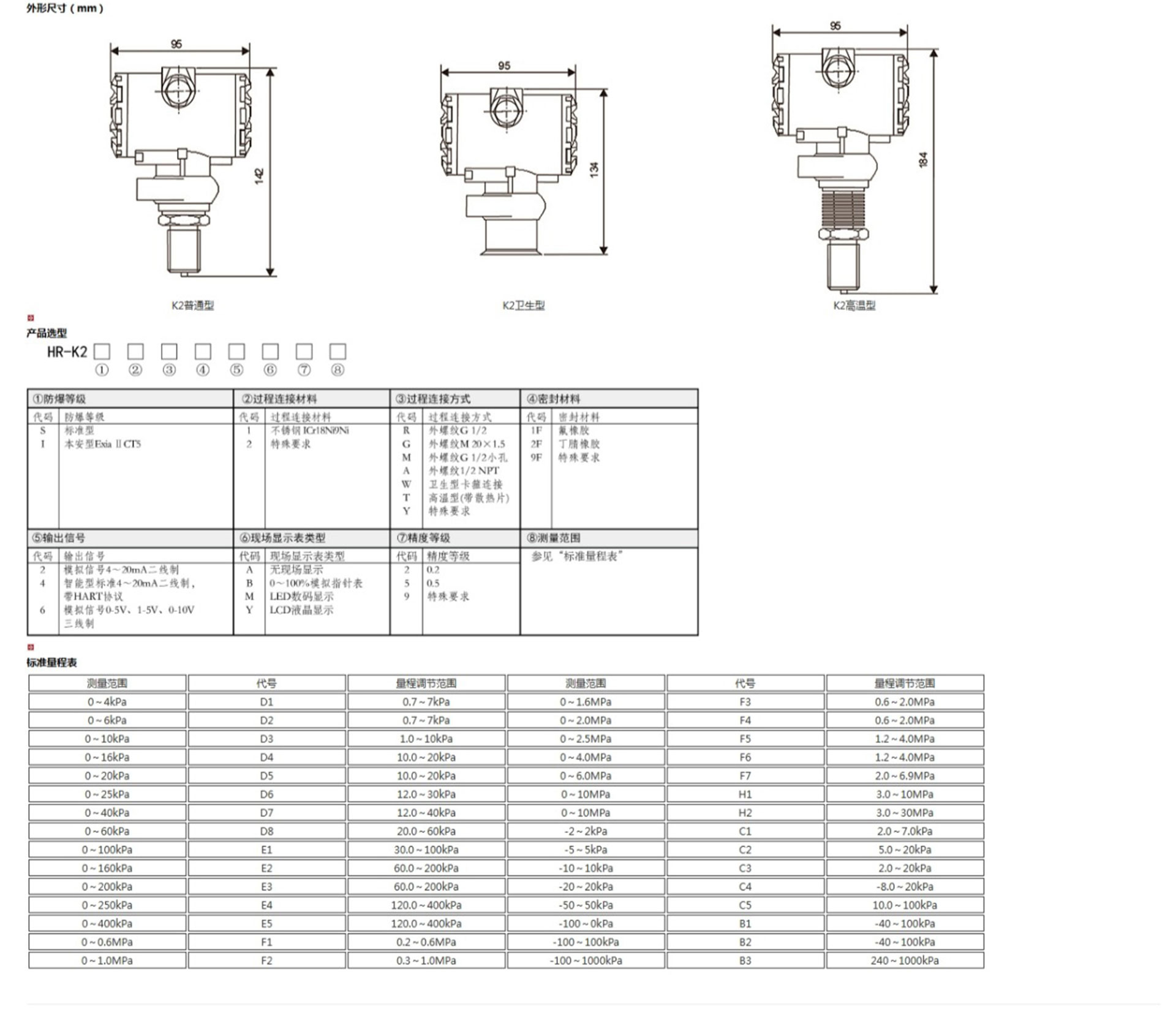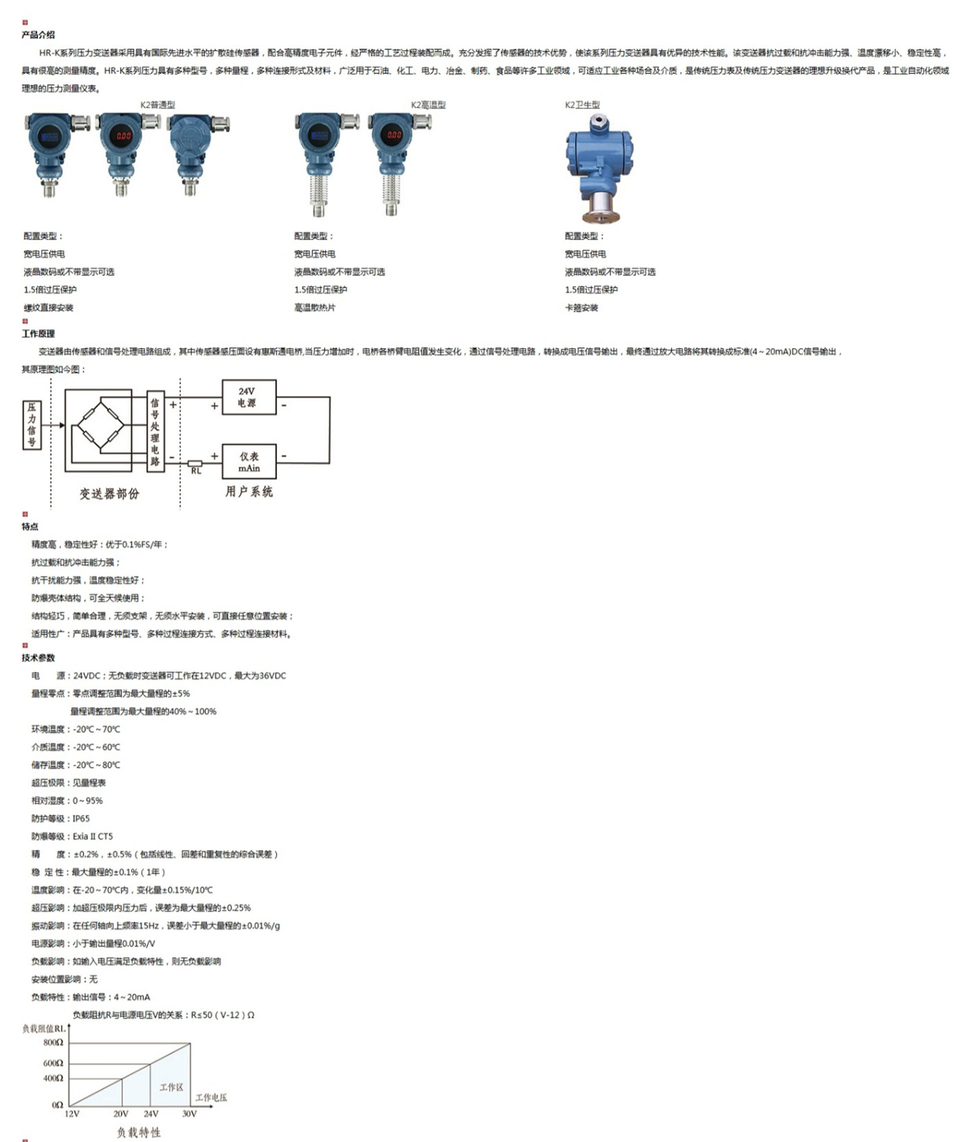 HR-K系列壓力變送器采用具有國(guó)際先進(jìn)水平的擴(kuò)散硅傳感器,配合高精度電子元件,經(jīng)嚴(yán)格的工藝過(guò)程裝配而成。充分發(fā)揮了傳感器的技術(shù)優(yōu)勢(shì),使該系列壓力變送器具有優(yōu)異的技術(shù)性能。該變送器抗過(guò)載和抗沖擊能力強(qiáng)、溫度漂移小、穩(wěn)定性高,具有很高的測(cè)量精度。